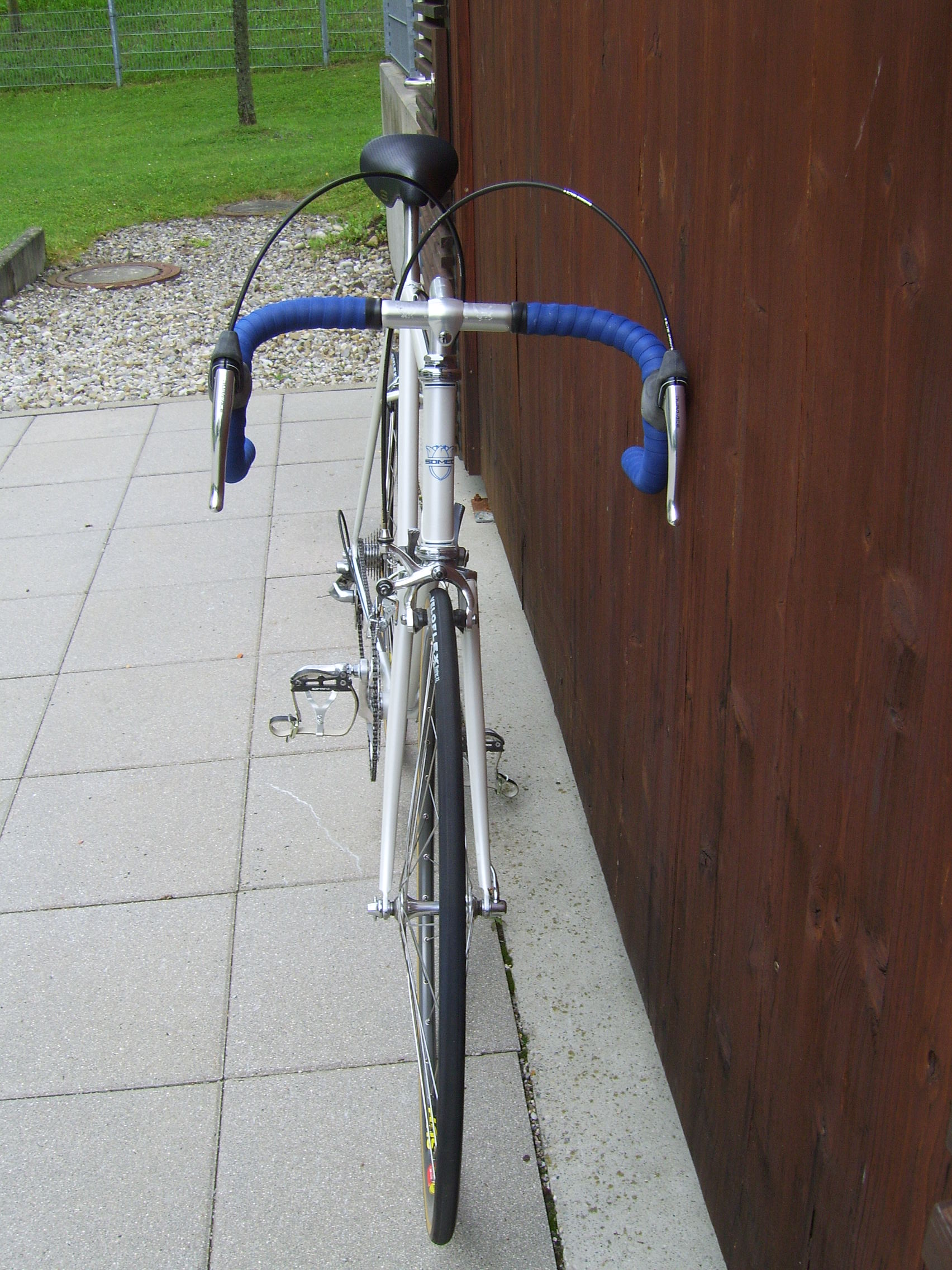 E70er Jahre, weiß-metallic, RH 58cm (C/C), Columbus SLX-Rohrsatz, Campagnolo Ausfallenden, keine Rennen, guter Zustand, Rahmennummer C349, Lagerspuren wurden prof. beilackiert